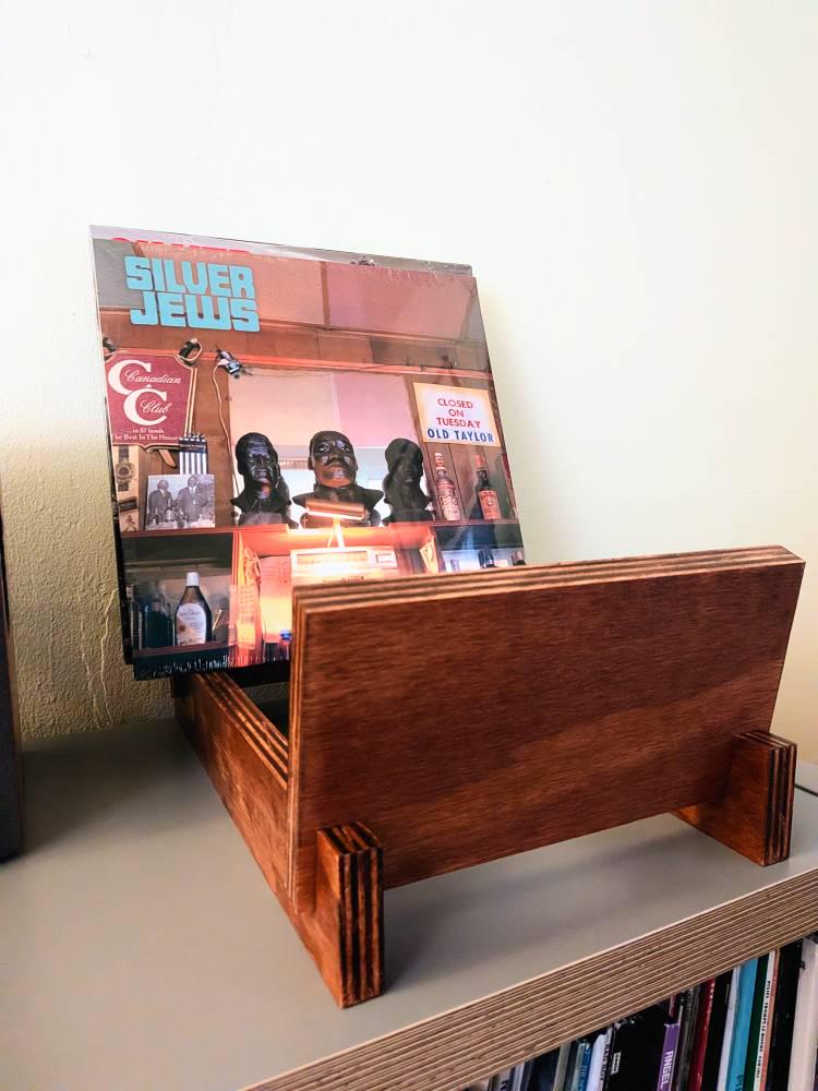 Handmade in the USA, this four-piece vinyl album display rack is the perfect way to store and display your record albums. Easy to assemble, no tools or screws needed. Free Shipping!